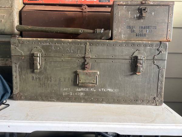 • Ammunition chest markings including “.50 cal” (likely paired or repurposed ammo boxes stacked on top)