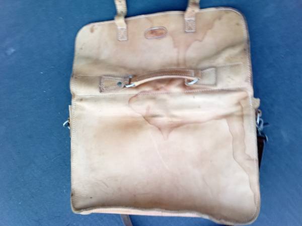 Vintage GRANTS NATURAL ((((( HEAVY))))) Leather Briefcase Attache Case laptop .Messenger Bag Tote In good condition except for the stain Might be water .. See photo. $45. CALLS ONLY.